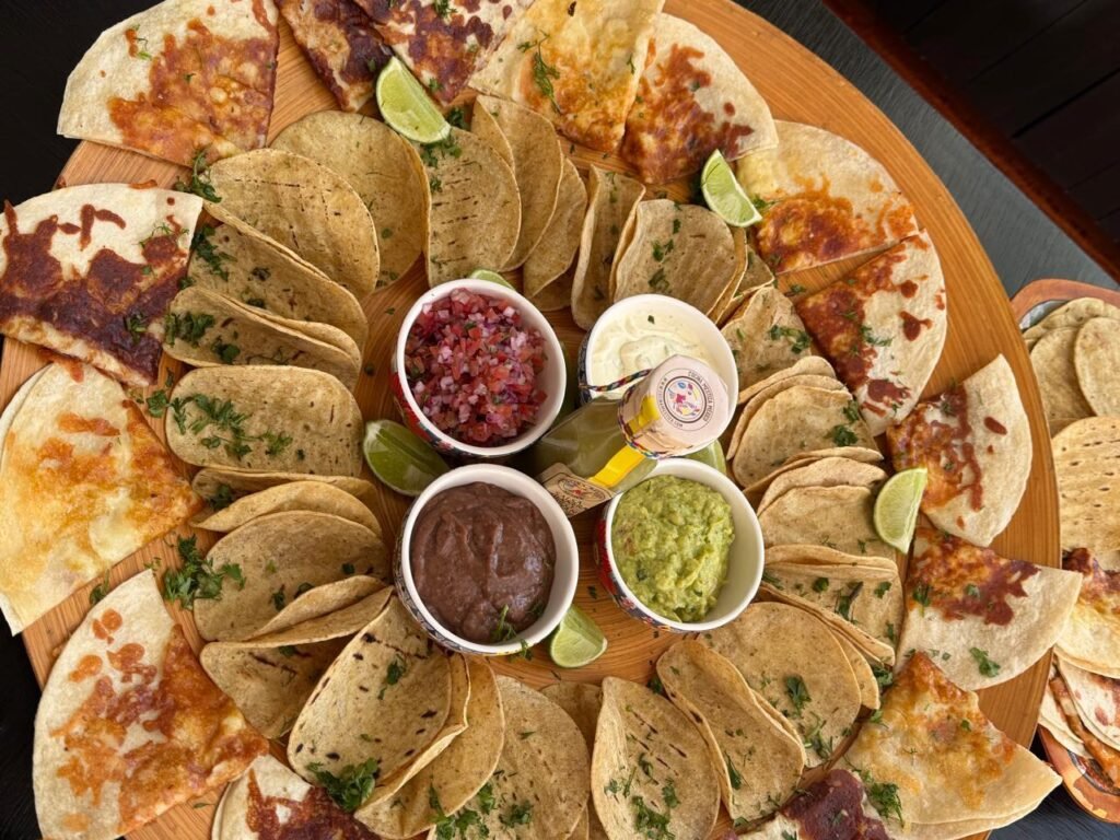 Tacos y quesadillas, y de acompañantes pueden elegir cola de res, pollo al pastor o camarones apanados.